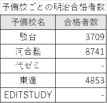 合格者数を予備校ごとにまとめました。(2025年3月現在の情報)